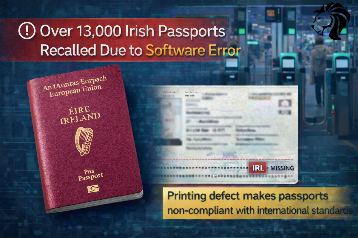 Ireland Recalls Nearly 13,000 Passports After Software Update Error Ireland’s Department of Foreign Affairs has recalled 12,904 passports after a software update introduced a printing defect that could cause[…]
